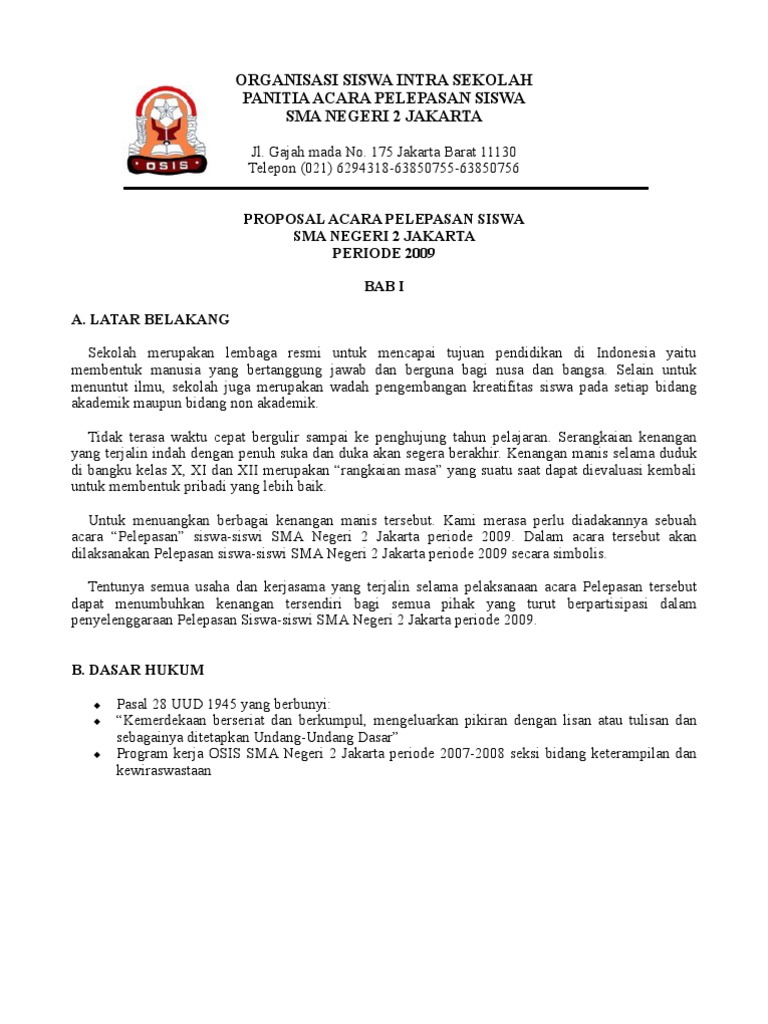 Berikut contoh proposal untuk kegiatan maulid nabi muhammad saw 1442 h / 2020 m untuk kegiatan sekolah yang bisa menjadikan refrensi pembuatan proposal anda. Dari penjelasan diatas, dapat diambil kesimpulan bahwa proposal dapat didefinisikan sebagai sebuah perancangan tertulis bentuk pengajuan atau. Sebuah contoh proposal kegiatan sekolah biasanya berisikan segala hal yang akan berhubungan dengan kegiatan sekolah yang akan diadakan berdasarkan berbagai pengertian yang dikemukakan oleh para ahli di atas, dengan demikian dapat ditarik kesimpulan yaitu proposal kegiatan. Contoh proposal skripsi hukum perdata tentang perk. Proposal dibuat untuk mendapatkan persetujuan pihak lain, bisa juga dibuat untuk permohonan dana bantuan yang nantinya akan terdapat kerja sama antara pihak yang.